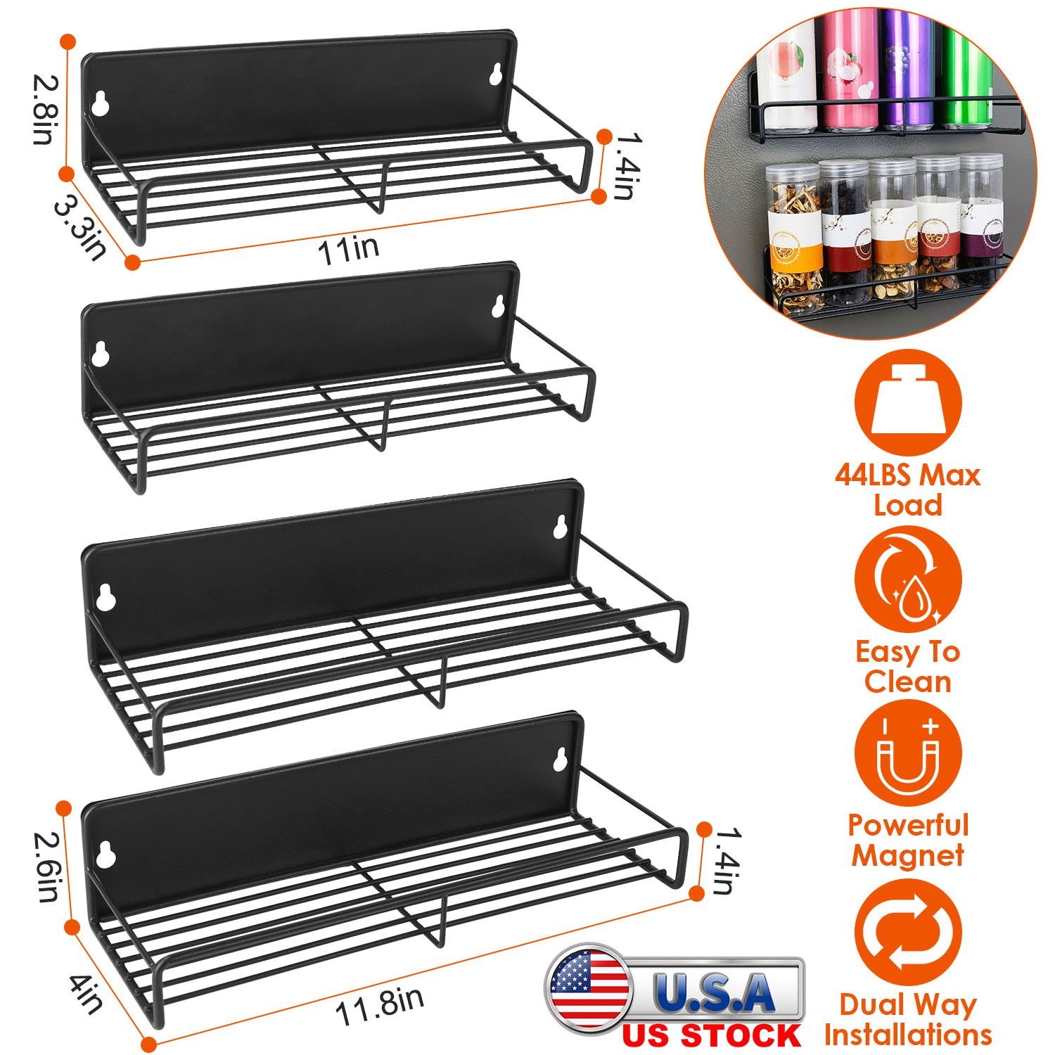 4Pack Strong Magnetic Spice Rack Organizer Fridge Storage Shelf for Jars Seasoning Tins Utensils Space Saver Holder for Refrigerator Microwave