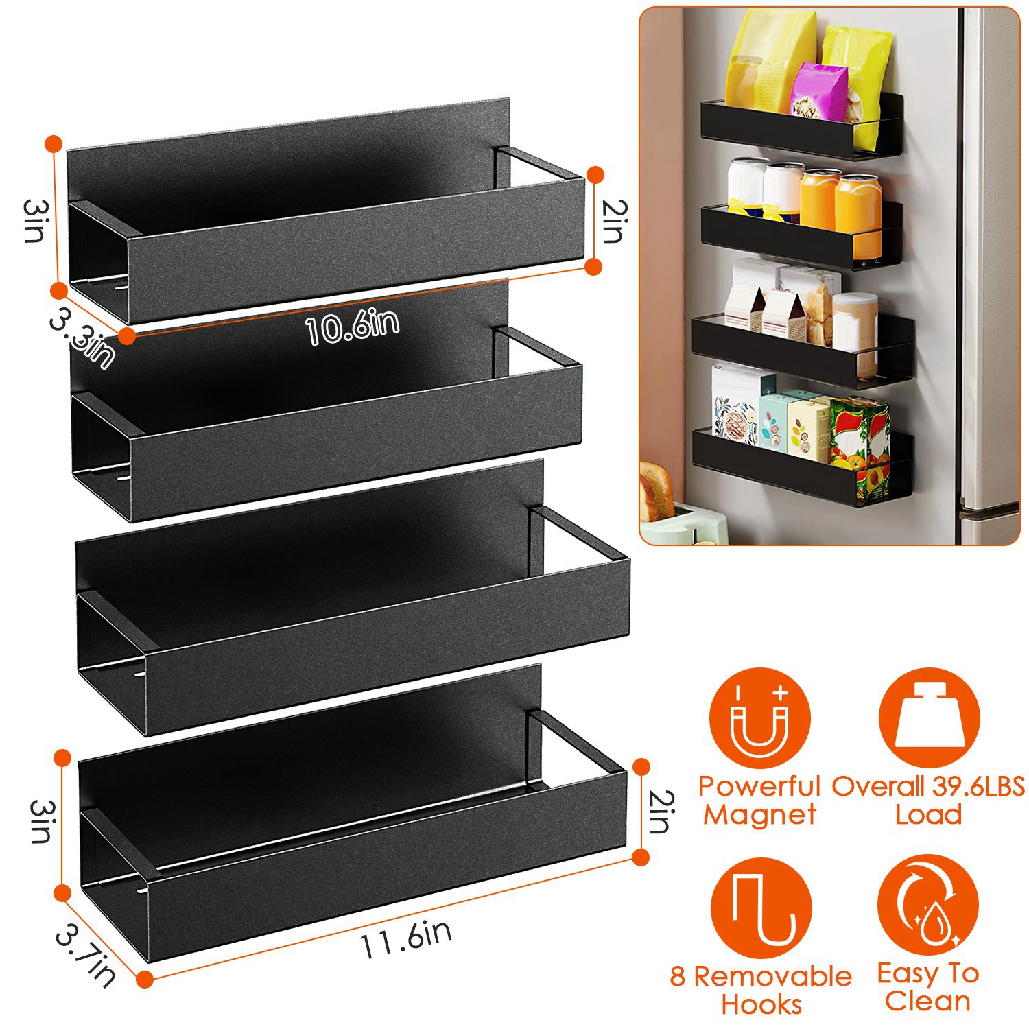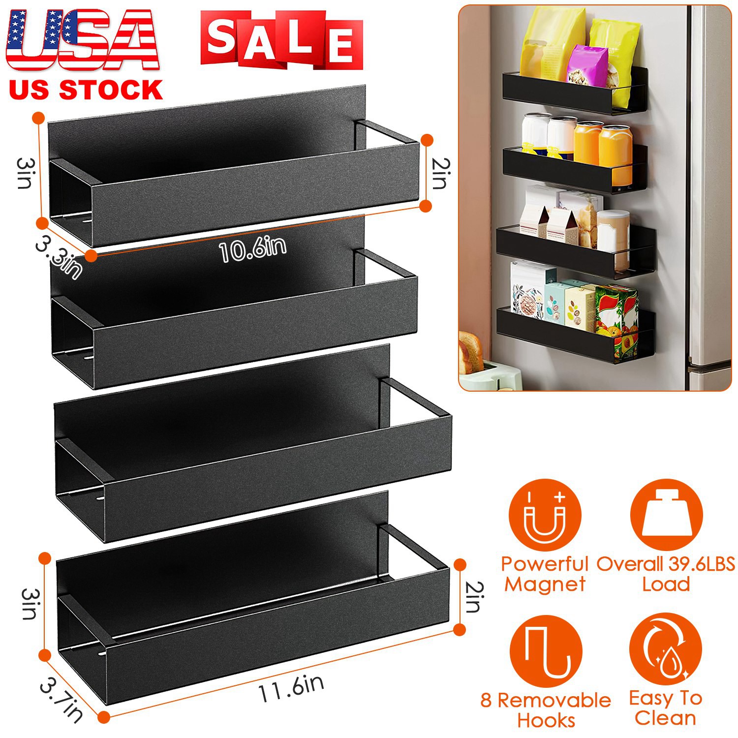 4Pcs Spice Rack Strong Magnetic Seasoning Storage Shelf with 8 Removable Hooks for Refrigerator Microwave Spice Storage Holder