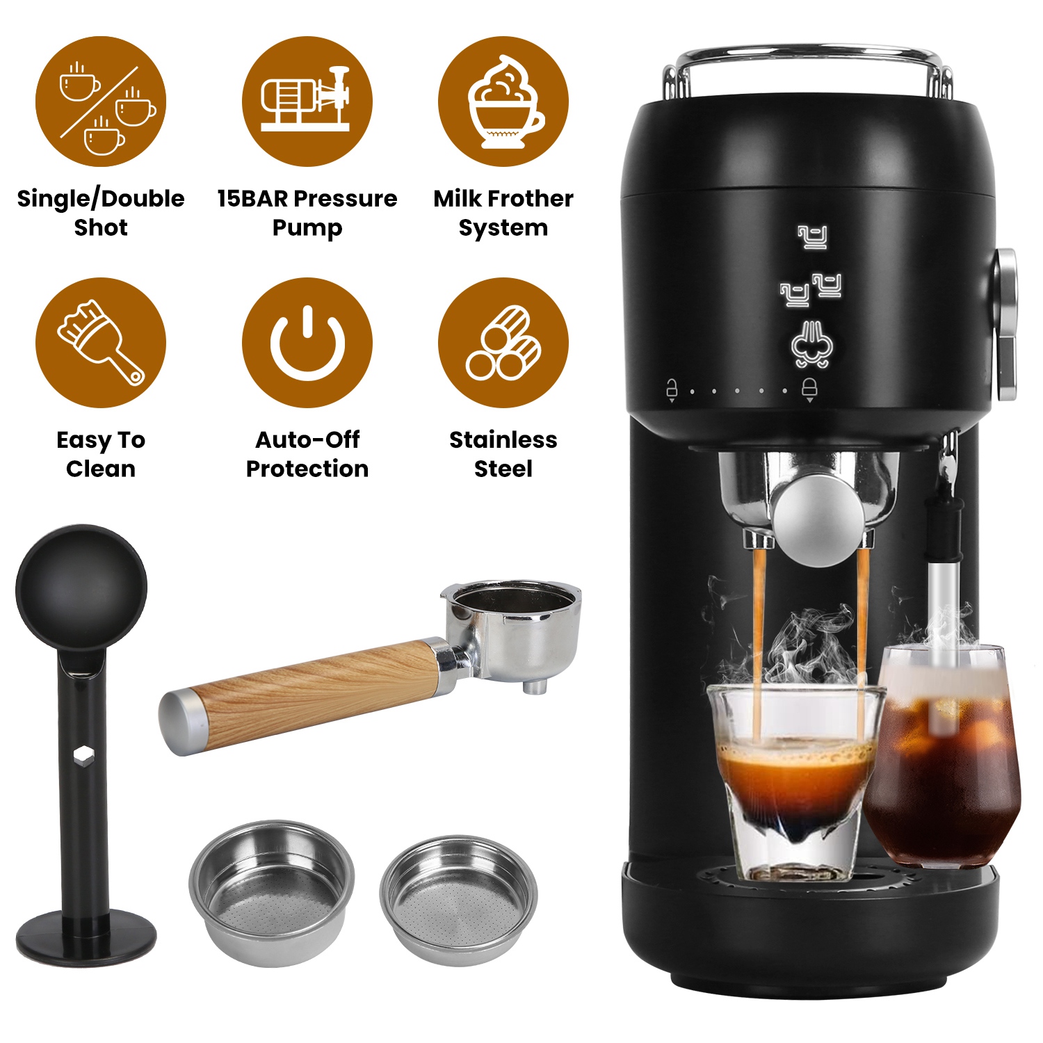 Espresso Machine With Adjustable Milk Frother Steam Wand 33.8OZ Removable Water Tank Heating Panel 15BAR Professional Coffee Maker For Espresso Latte