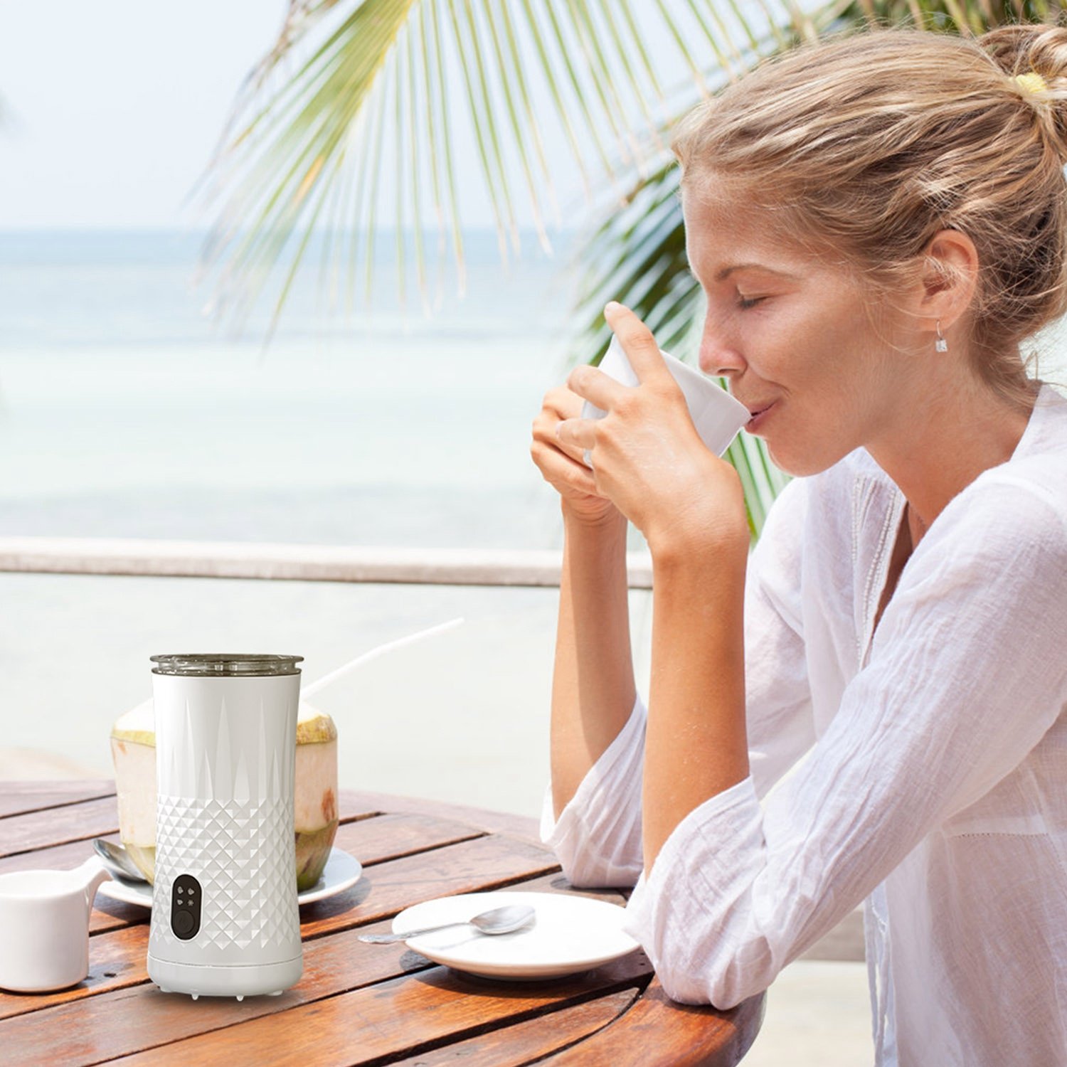 Our 4-in-1 electric milk forther adopts 4 working modes to instantly satisfy your different coffee and milk drinking demands in 1-3 minutes. Equipped with advanced noise defender technology, ensures quiet operation and won’t disturb other people whether in early morning or late night. Made of food grade stainless steel with non-stick coating, make it easy to clean after use. Diamond-shaped polygonal waist design is elegance and ergonomic. An ideal helper to make you a cup of delicious lattes or cappuccinos.