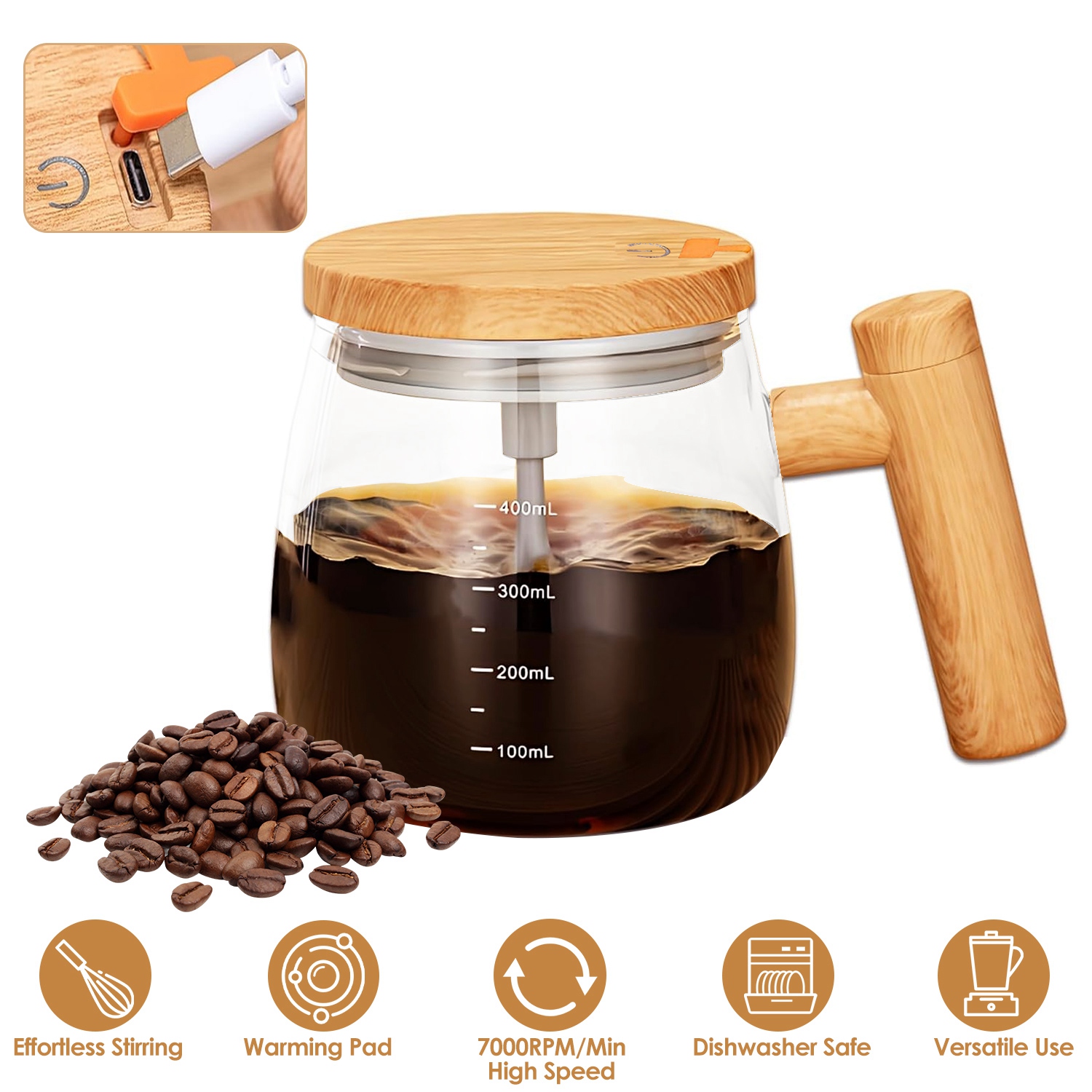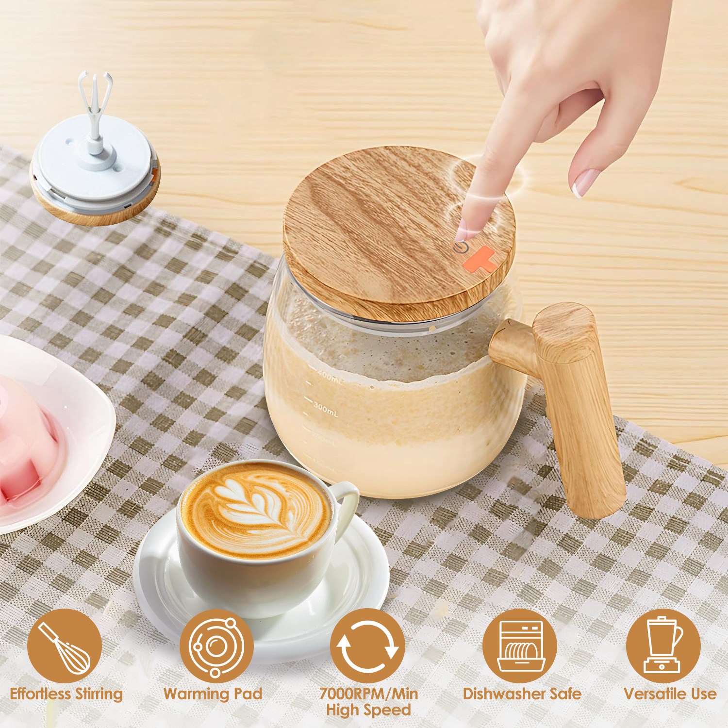 Are you tired of struggling to mix your morning coffee or oatmeal to perfection? Look no further than our self mixing mug! Featured with 7000rpm/min high speed, this electric mixing cup does all the stirring for you, such as stirring coffee, oatmeal, milk powder, black sesame paste, hot chocolate, protein powder, cocoa, juices, chia seeds, matcha etc.. Also suitable for whisking eggs. Made of high borosilicate glass, heat-resistant up to 302℉, dishwasher safe and healthy to use. Provide up to 90 minutes of continuous stirring after 1 hour’s charging, making it practical for everyday use. Don\'t settle for lumpy oatmeal or poorly mixed drinks. Upgrade to our self-stirring mug and experience the future of mixing!
