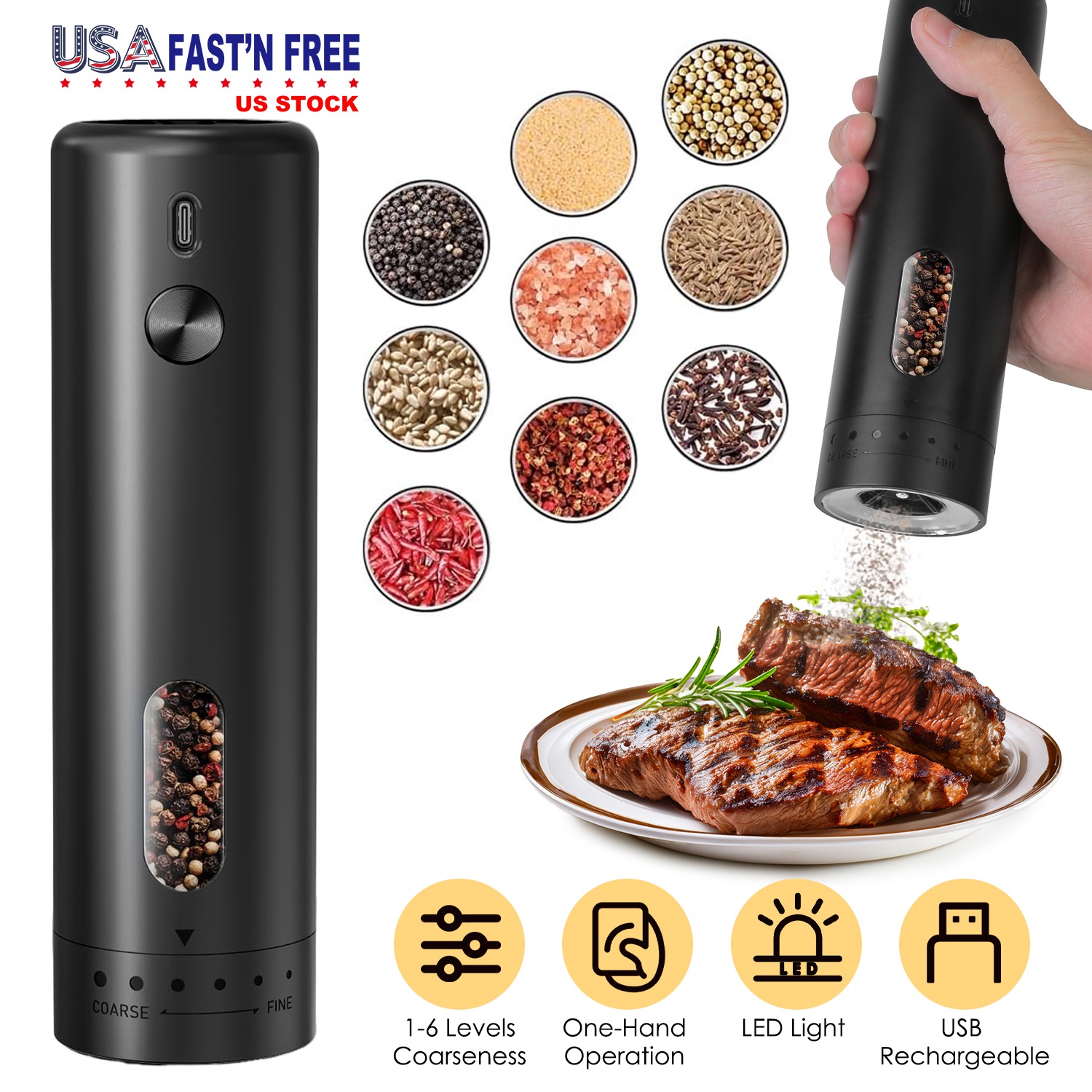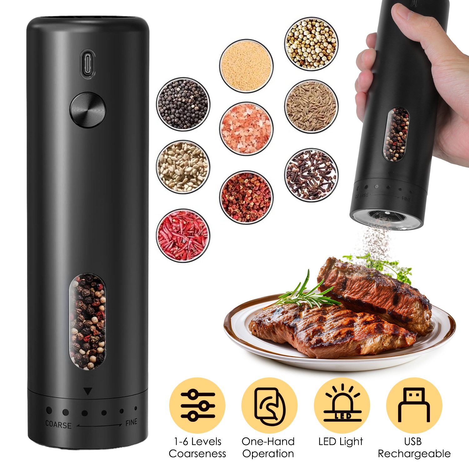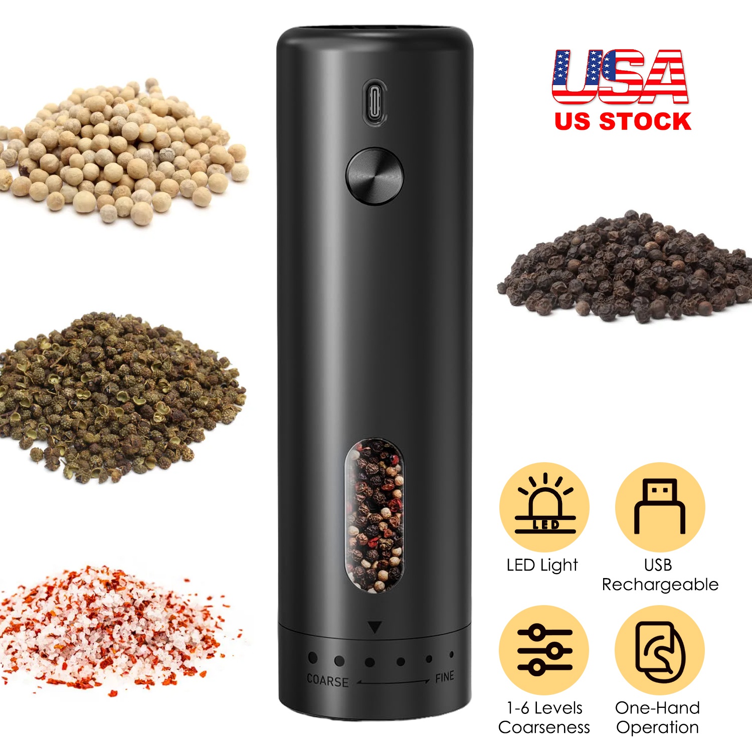 Electric Pepper Grinder USB Rechargeable Pepper Mill Automatic Salt Grinder with 6 Adjustable Coarseness LED Light 110ML/3.72OZ Container One Hand Ope Electric Pepper Grinder USB Rechargeable Pepper Mill Automatic Salt Grinder with 6 Adjustable Coarseness LED Light 110ML/3.72OZ Container One Hand Ope Electric Pepper Grinder USB Rechargeable Pepper Mill Automatic Salt Grinder with 6 Adjustable Coarseness LED Light 110ML/3.72OZ Container One Hand Ope Electric Pepper Grinder USB Rechargeable Pepper Mill Automatic Salt Grinder with 6 Adjustable Coarseness LED Light 110ML/3.72OZ Container One Hand Ope Electric Pepper Grinder USB Rechargeable Pepper Mill Automatic Salt Grinder with 6 Adjustable Coarseness LED Light 110ML/3.72OZ Container One Hand Ope Electric Pepper Grinder USB Rechargeable Pepper Mill Automatic Salt Grinder with 6 Adjustable Coarseness LED Light 110ML/3.72OZ Container One Hand Ope Electric Pepper Grinder USB Rechargeable Pepper Mill Automatic Salt Grinder with 6 Adjustable Coarseness LED Light 110ML/3.72OZ Container One Hand Ope
