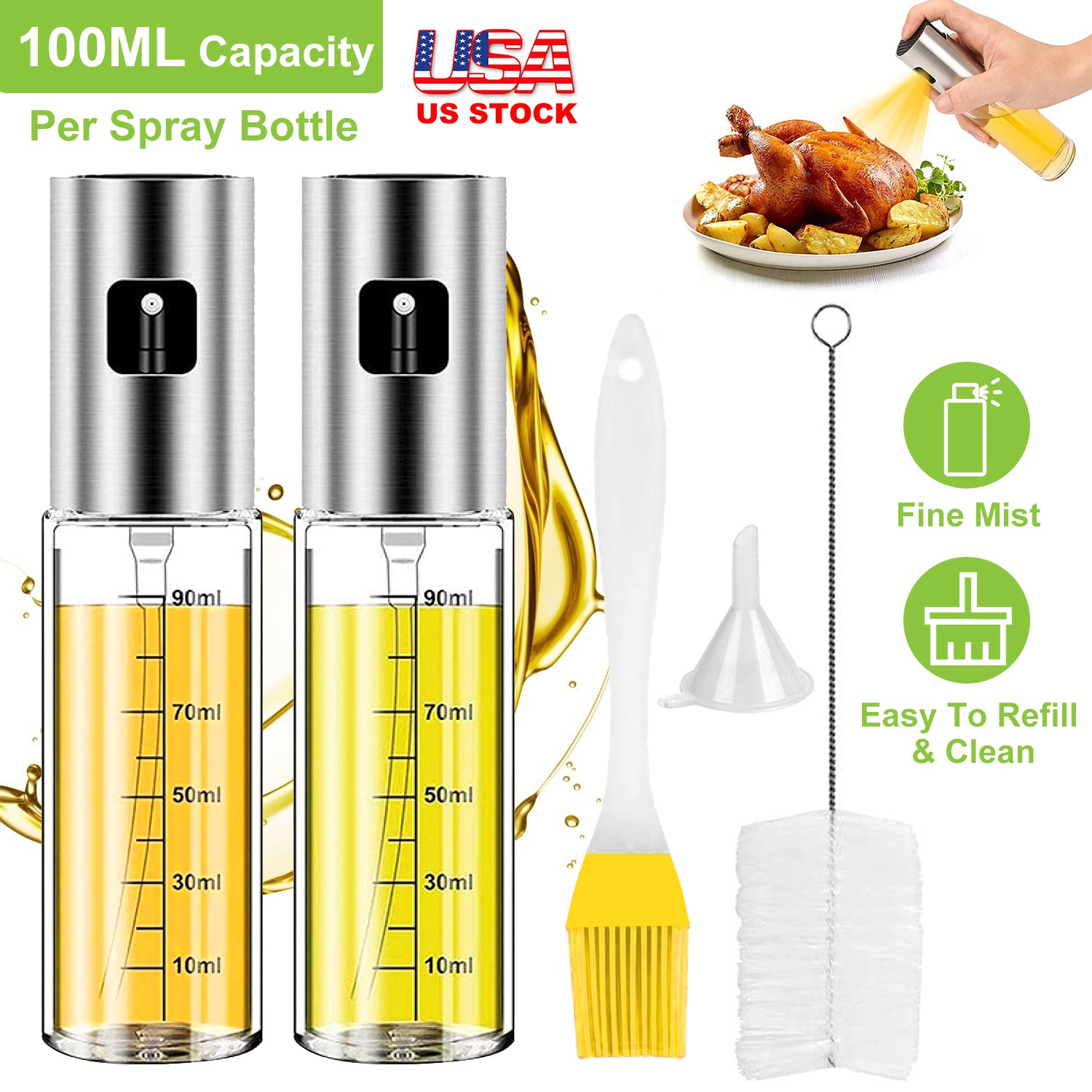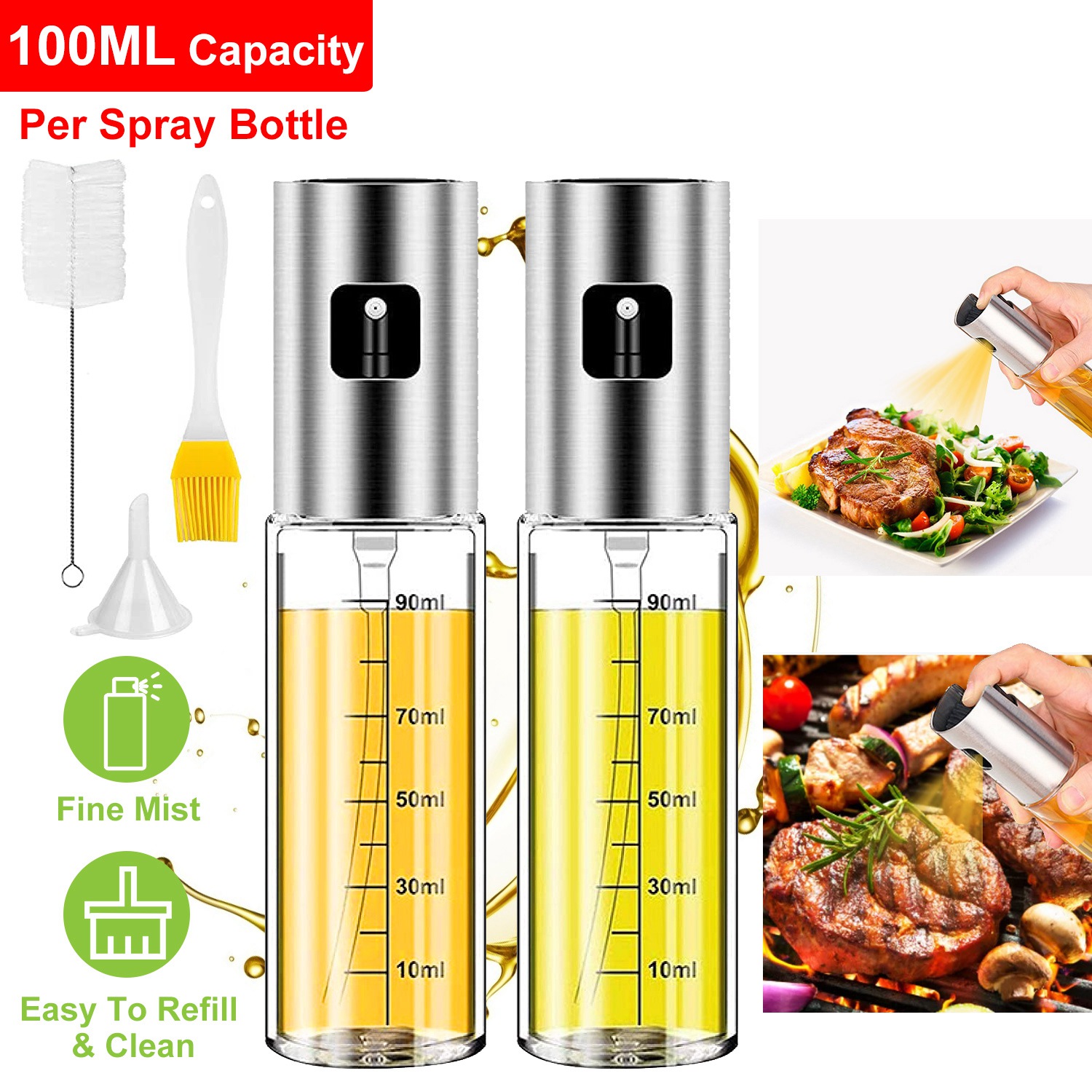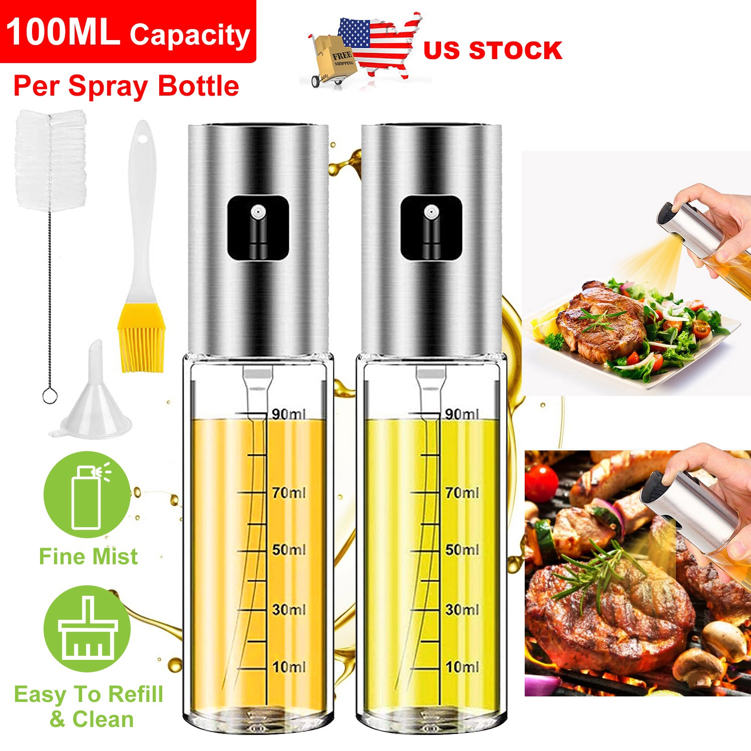 Home > Olive Oil Sprayer 2Pcs Oil Dispenser Mister Refillable Stainless Steel Glass Vinegar Bottle w/ Measurement Oil Control Diet For Cooking BBQ Roast Sala