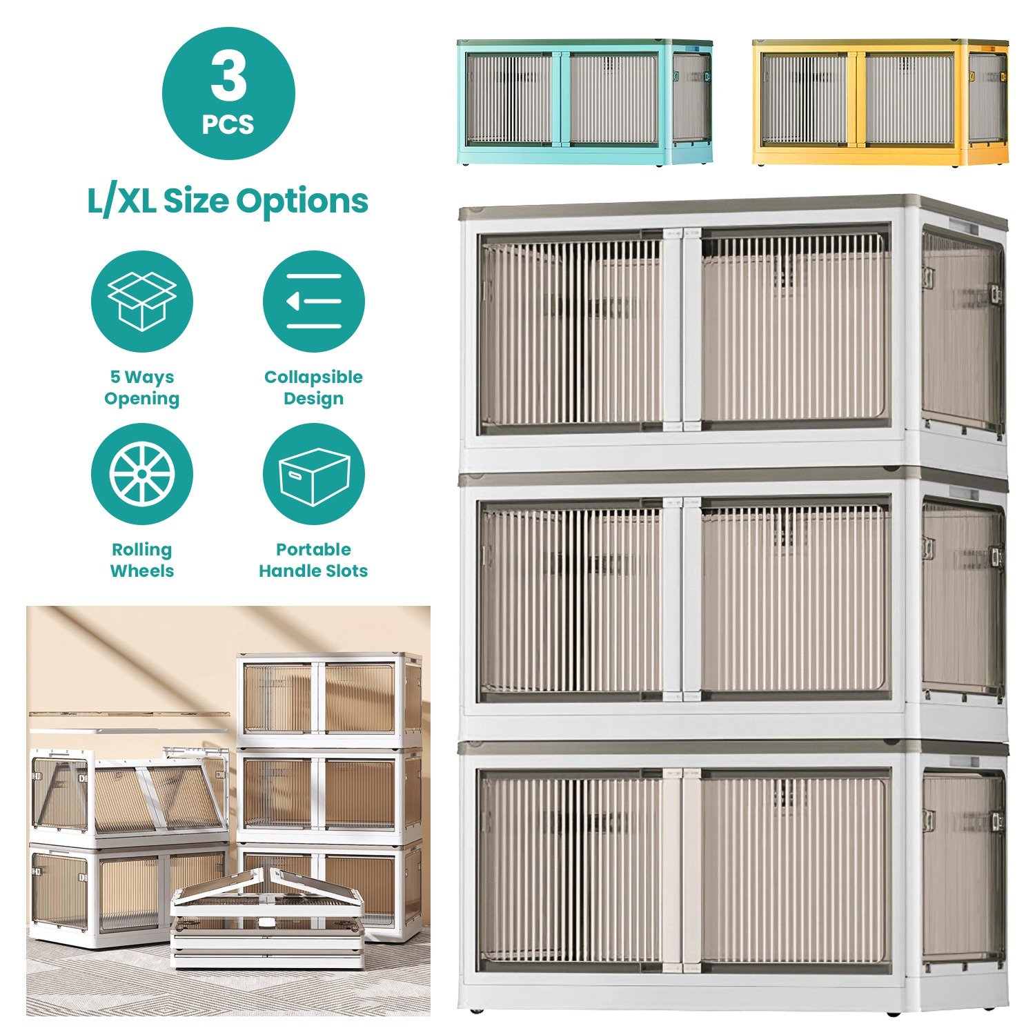 Home > 3Pcs Foldable Storage Bins with Lid 4 Doors Collapsible Stackable Closet Organizer Containers with Lock 4Pcs Wheels